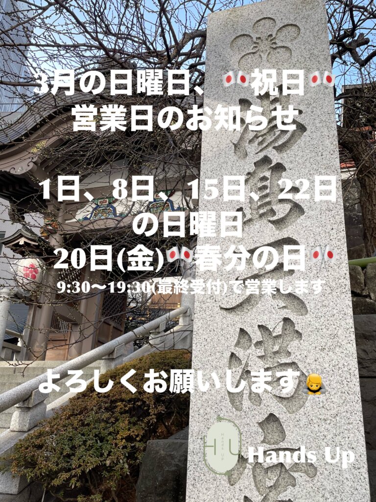 【3月】日曜日、祝日営業のお知らせ