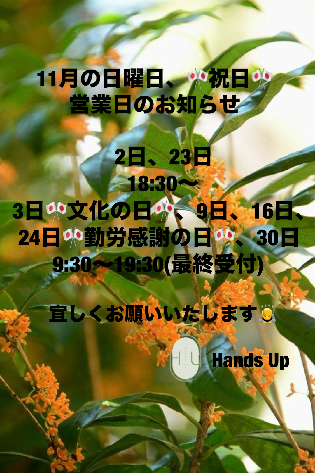 【11月】日曜日、祝日営業のお知らせ
