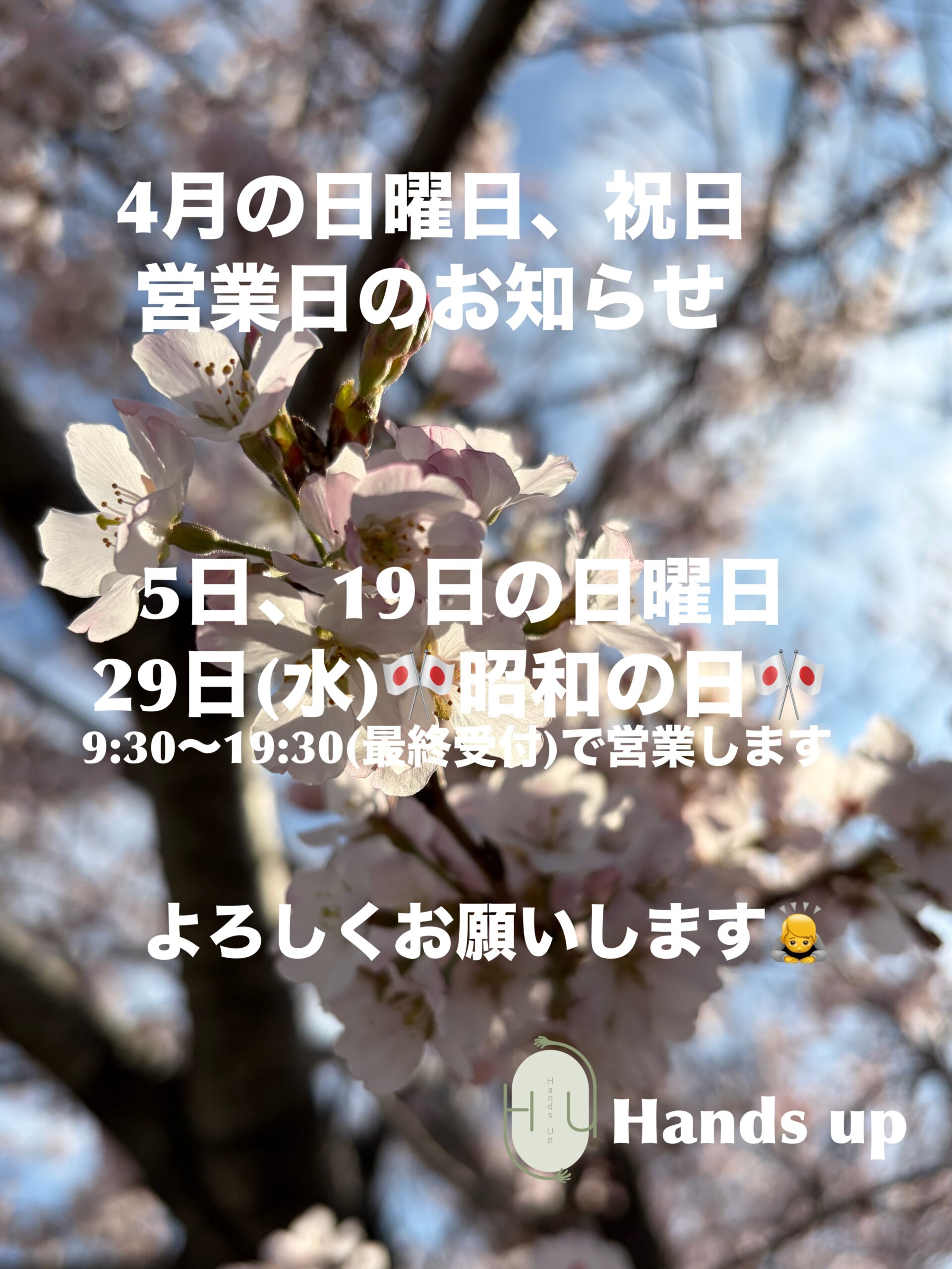 【4月】日曜日、祝日営業のお知らせ